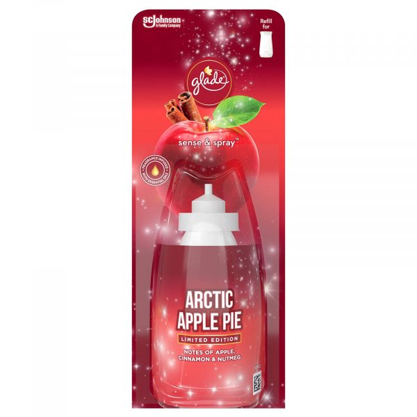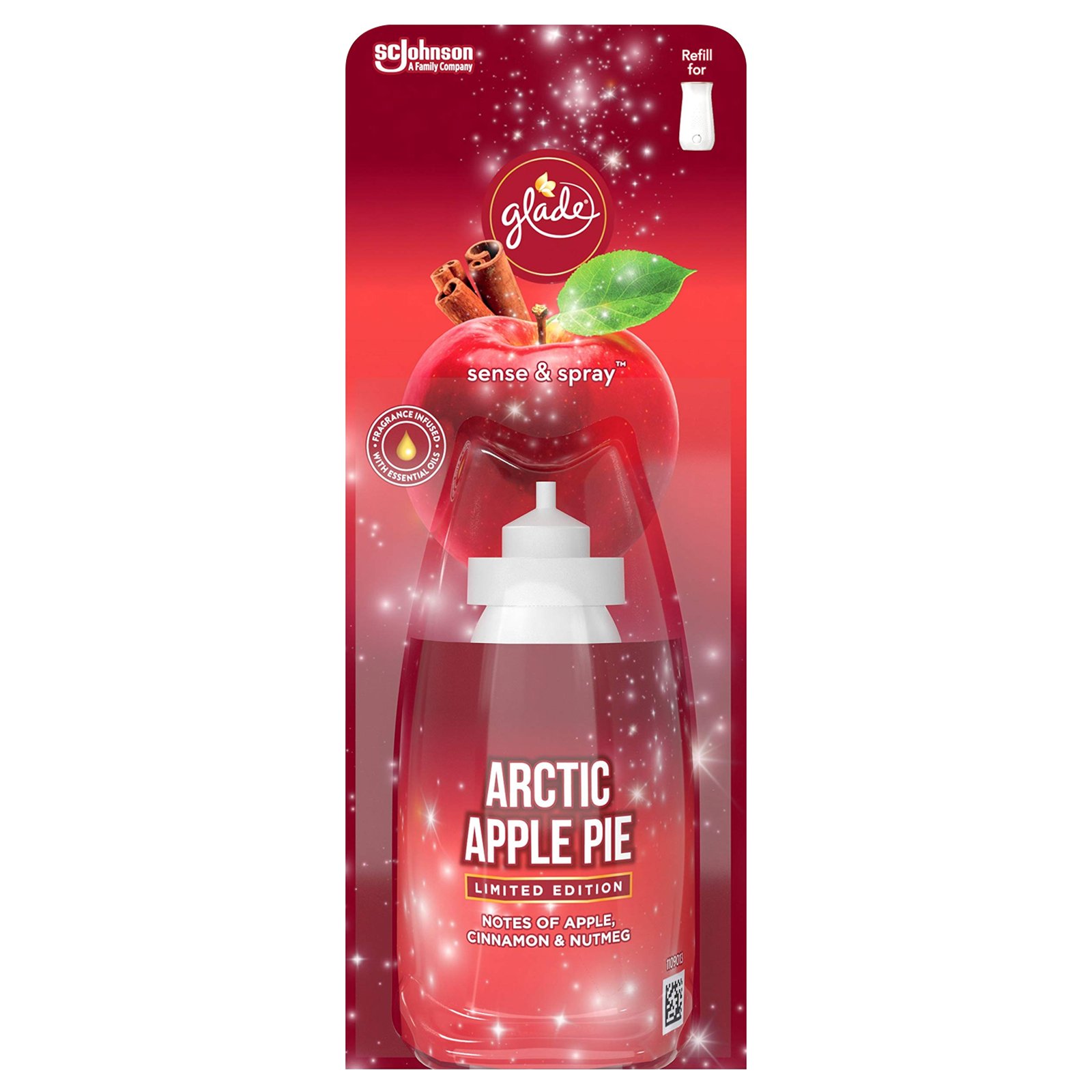 Set a festive vibe with the only motion activated aroma, Glade Sense & Spray air freshener diffuser refill. Try our Limited Edition Holiday Fragrances for small moments of joy. Arctic Apple Pie scent will put you in the holiday spirit. Glade’s home air freshener is meticulously developed by professional perfumers and features a scent infused with essential oils, with notes of apple, cinnamon, and baked crisp.